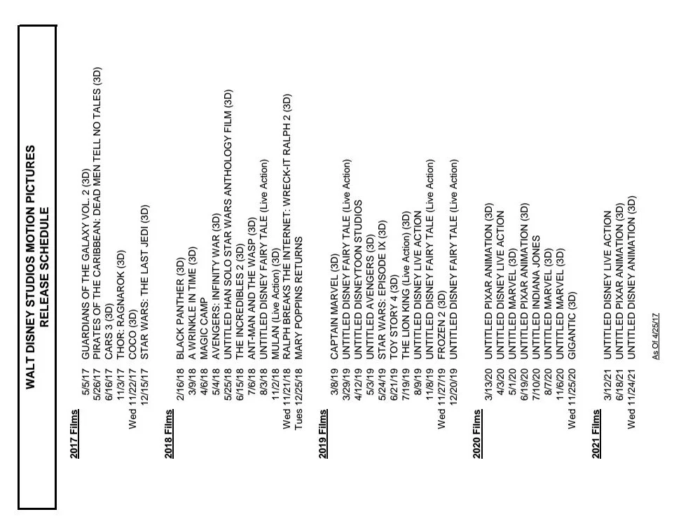 Extra Stuff Extra Spoils - Episode 17 preview - Jiaming and Albert talk about a master calendar list for the release dates of the upcoming Disney Studios owned movies for 2017, 2018, 2019, 2020, and some from 2021.